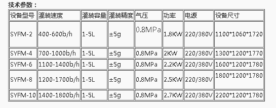 该系列灌装机主要用于各种1-20LPET桶和PE桶的食用油的定量灌装,技术参数为: